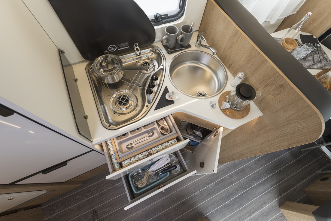 - Slim opgestelde kookplaat en spoelbak die zorgen voor een handige en vrije werkruimte.